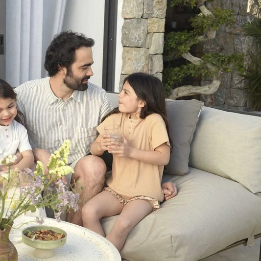 TRIMM Copenhagen har skabt en sofa, der er bygget til at holde. Hver sofa i Brick-serien er fremstillet med de bedste materialer, der kan modstå årstidernes skiften og være udenfor året rundt. Betrækket er lavet af Sunbrella Plus, et stof der er både vandafvisende og UV-resistent, hvilket betyder, at det bevarer sin farve og tekstur, selv under de mest krævende udendørs forhold. Derudover er stoffet algeresistent, hvilket gør det nemt at vedligeholde og holde rent. Sofaens stel er lavet af rustfrit stål med KTL-behandling og pulverlakering, hvilket sikrer en ekstra lang holdbarhed og modstandskraft mod rust og vejrskader.