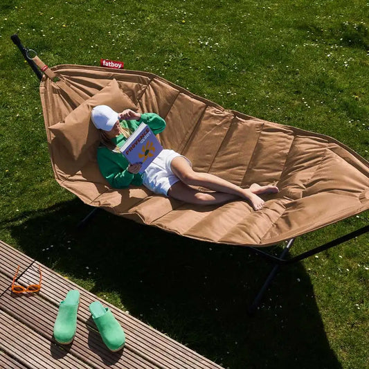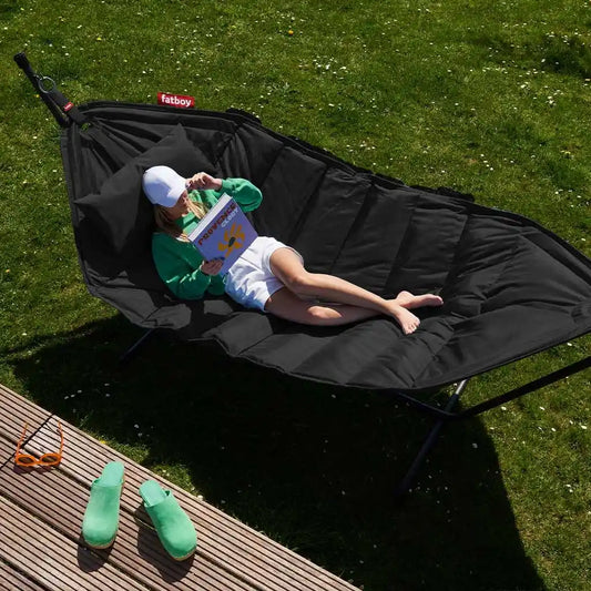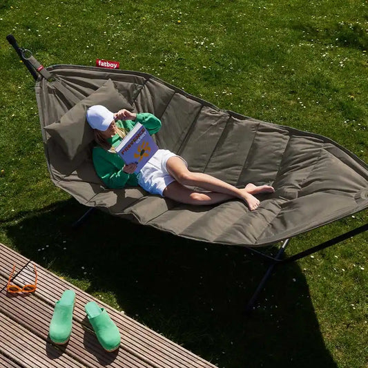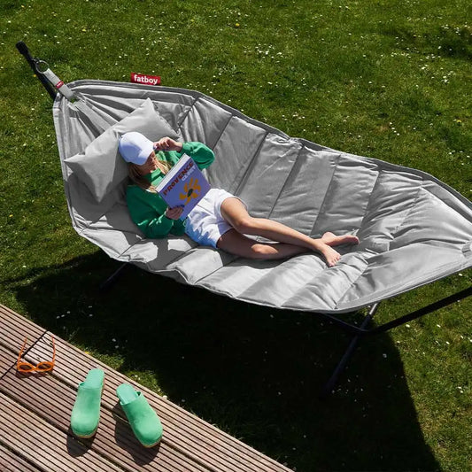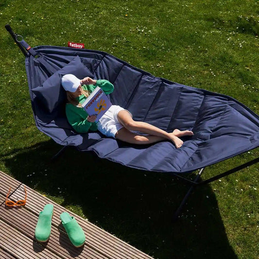 Fatboy Headdemock er en stor luksushængekøje, designet til at rumme op til to personer eller maksimalt 150 kg. Slut med at være afhængig af reb og træer – Headdemock er en innovativ hængekøje, der eliminerer disse begrænsninger. Med denne Fatboy-hængekøje og dens stativ kan du skabe din egen ubekymrede oplevelse og hænge, som du ønsker.